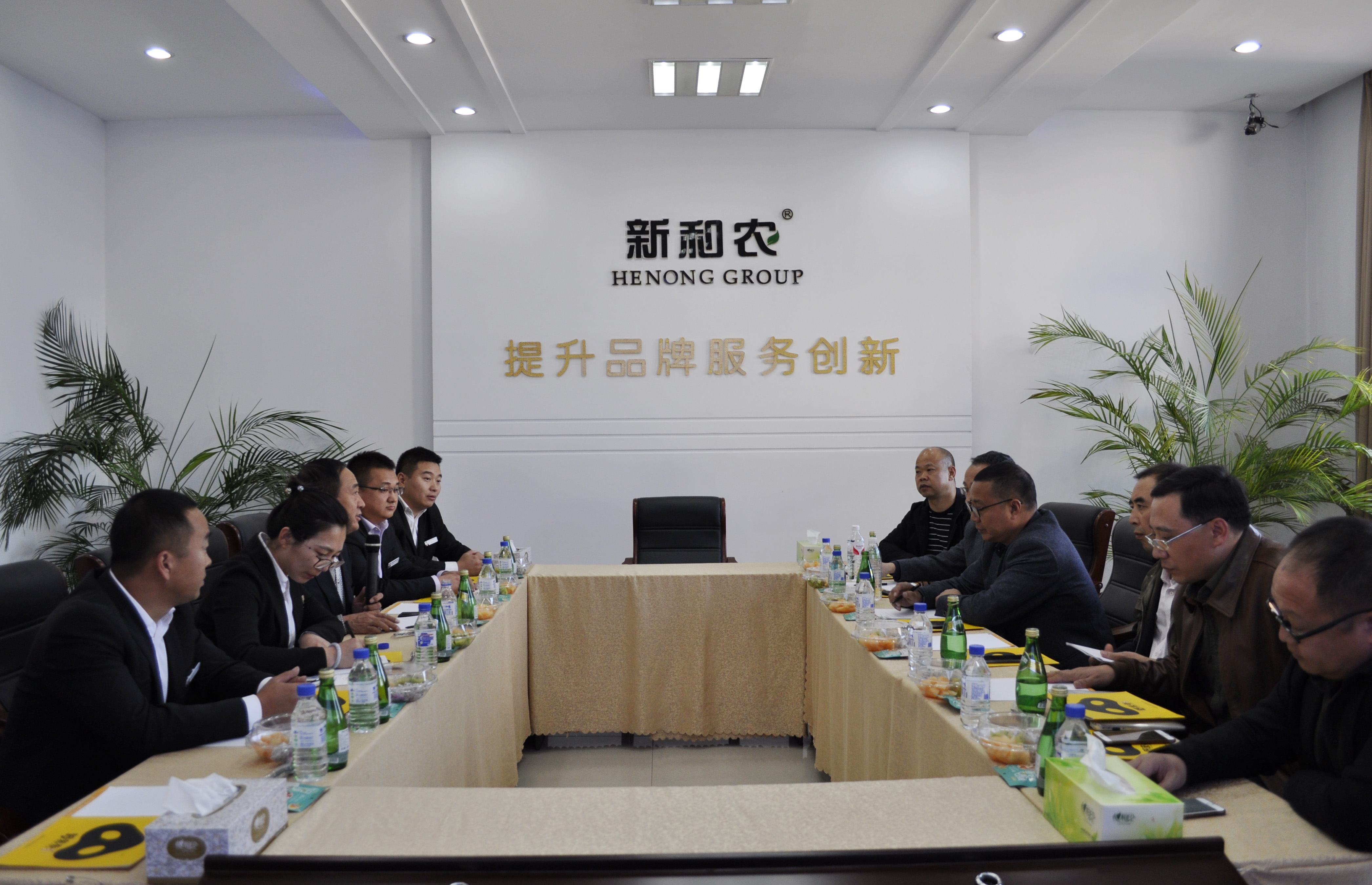 2018年10月19日,鐵騎力士集團總裁李全先生、總經理王潛先生一行11人蒞臨新和農進行參觀考察交流,參觀團在和農牧業集團董事長方彥明先生、人力資源總監王瑛輝女士、采購總監商云長先生等人陪同下,得到了熱情接待。